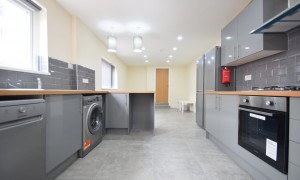 Introducing an exquisite six-bedroom residence situated on Northcote Street, this property redefines spacious living with its generously sized rooms that provide ample space for both relaxation and social interaction among housemates. Each bedroom is thoughtfully designed to include built-in wardrobes, desks, chairs, and comfortable beds, ensuring that every occupant enjoys a personal sanctuary equipped with essential furnishings. The expansive living room features a large custom sofa paired with a stylish coffee table, creating an inviting atmosphere perfect for gatherings or quiet evenings at home. The modern kitchen is equipped with high-end appliances, including a washing machine, a dishwasher, and two fridge freezers, catering to all culinary needs while enhancing convenience in daily living. This property not only boasts a prime location but is also finished to an exceptional standard, making it an ideal choice for those seeking both comfort and sophistication in their living environment.