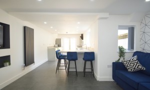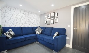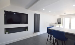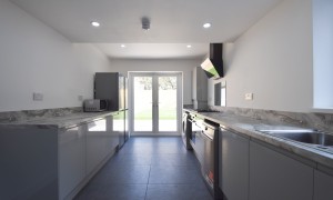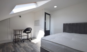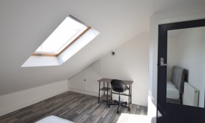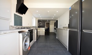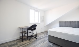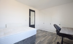 Introducing an exceptional six-bedroom residence that has been meticulously renovated to offer a blend of modern elegance and comfort. This stunning property features a spacious and contemporary kitchen, ideal for culinary enthusiasts, seamlessly flowing into a beautifully designed open living room. The living area is thoughtfully furnished with a corner sofa and a wall-mounted television, complemented by a tastefully decorated feature wall adorned with frames that enhance the inviting ambiance of the home. Each of the six bedrooms is a sanctuary of comfort, equipped with built-in wardrobes, a desk, a chair, and a fabric-framed bed, ensuring that every occupant enjoys both functionality and style. The bright and airy layout of the home is accentuated by large windows that invite natural light, creating a warm and welcoming atmosphere throughout. For those warm, sunny days, the expansive garden area offers a perfect retreat, featuring a harmonious blend of patio space and artificial grass, making it an ideal setting for summer gatherings and outdoor relaxation.