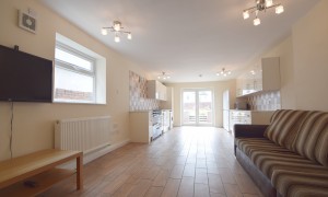 Introducing an exceptional 8-bedroom residence located on Wyeverne Road, ideally suited for students seeking both comfort and convenience. Each bedroom is thoughtfully designed to include a double bed, built-in wardrobe, desk, and chair, ensuring a conducive environment for study and relaxation. The property boasts three luxurious bathrooms, each fully tiled from floor to ceiling with high-end tiles, equipped with a sink and toilet, providing ample facilities for all residents. A standout feature of this home is the expansive open-plan lounge, which is perfect for socialising and unwinding, furnished with a large custom sofa and a wall-mounted television for entertainment. The modern open kitchen further enhances the appeal of this property, featuring three fridge/freezers, a washer/dryer, a dishwasher, and a spacious dining table (dining table not pictured), making it an ideal space for communal meals and gatherings. The large free-range cooker adds to the kitchen's functionality, catering to the culinary needs of a busy household. With its ultra-modern design and generous living space, this property is a prime choice for students looking for a stylish and practical living arrangement