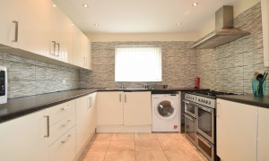 This exceptional six-bedroom residence has undergone renovations, presenting a harmonious blend of modern aesthetics and functional living spaces. The expansive open-plan lounge and kitchen area is designed for both comfort and practicality, featuring a free-range double cooker/oven, a washing machine, and two fridge freezers, complemented by a spacious dining table that invites gatherings and culinary experiences. The living room is anchored by a large custom sofa, providing an inviting space for relaxation and entertainment. Each of the six bedrooms is generously proportioned, equipped with fitted wardrobes, comfortable beds, desks, and desk chairs, ensuring that every occupant enjoys a private retreat that balances style and utility.