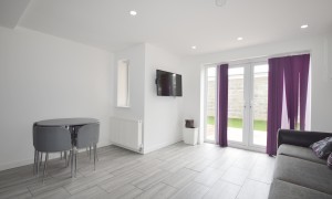 This exceptional property boasts an incredibly high standard of design and craftsmanship, featuring a remarkably spacious open-plan lounge and kitchen that seamlessly blend functionality with modern aesthetics. The expansive layout is perfect for both entertaining guests and enjoying quiet moments, allowing for a fluid transition between the living and cooking areas. The lounge is adorned with large windows that flood the space with natural light, creating an inviting atmosphere, while the kitchen is equipped with appliances and ample storage solutions, catering to the needs of any culinary enthusiast. The contemporary finishes and thoughtful design elements throughout the space enhance its appeal, making it an ideal setting for both relaxation and social gatherings.